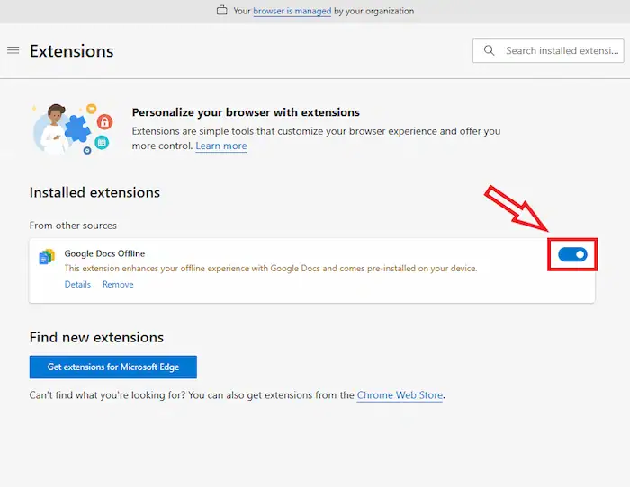 - Tại cuối danh sách, chọn Get extensions for Microsoft Edge.