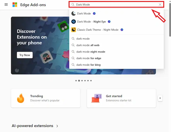 - Trong ô Tìm kiếm, nhập tên hoặc từ khóa của tiện ích mà bạn cần tìm (ví dụ: Adblock, Grammarly, Dark Mode…).