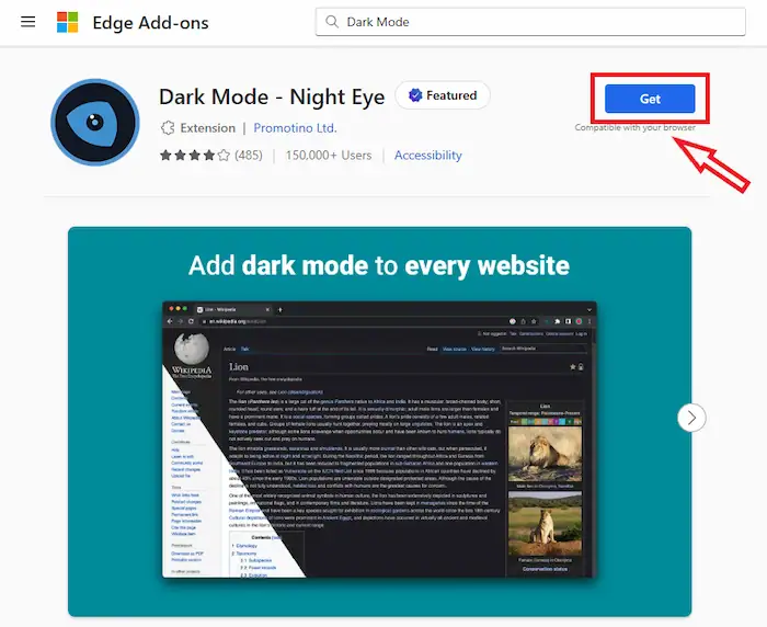 - Nhấn nút Get (Thêm vào Edge) trên trang của tiện ích.