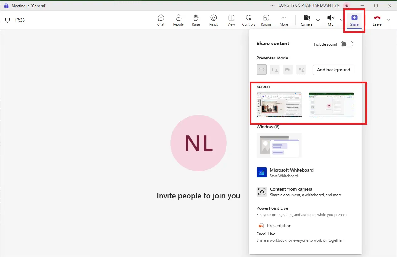 Cách 2: Chia sẻ cửa sổ PowerPoint qua Share Screen