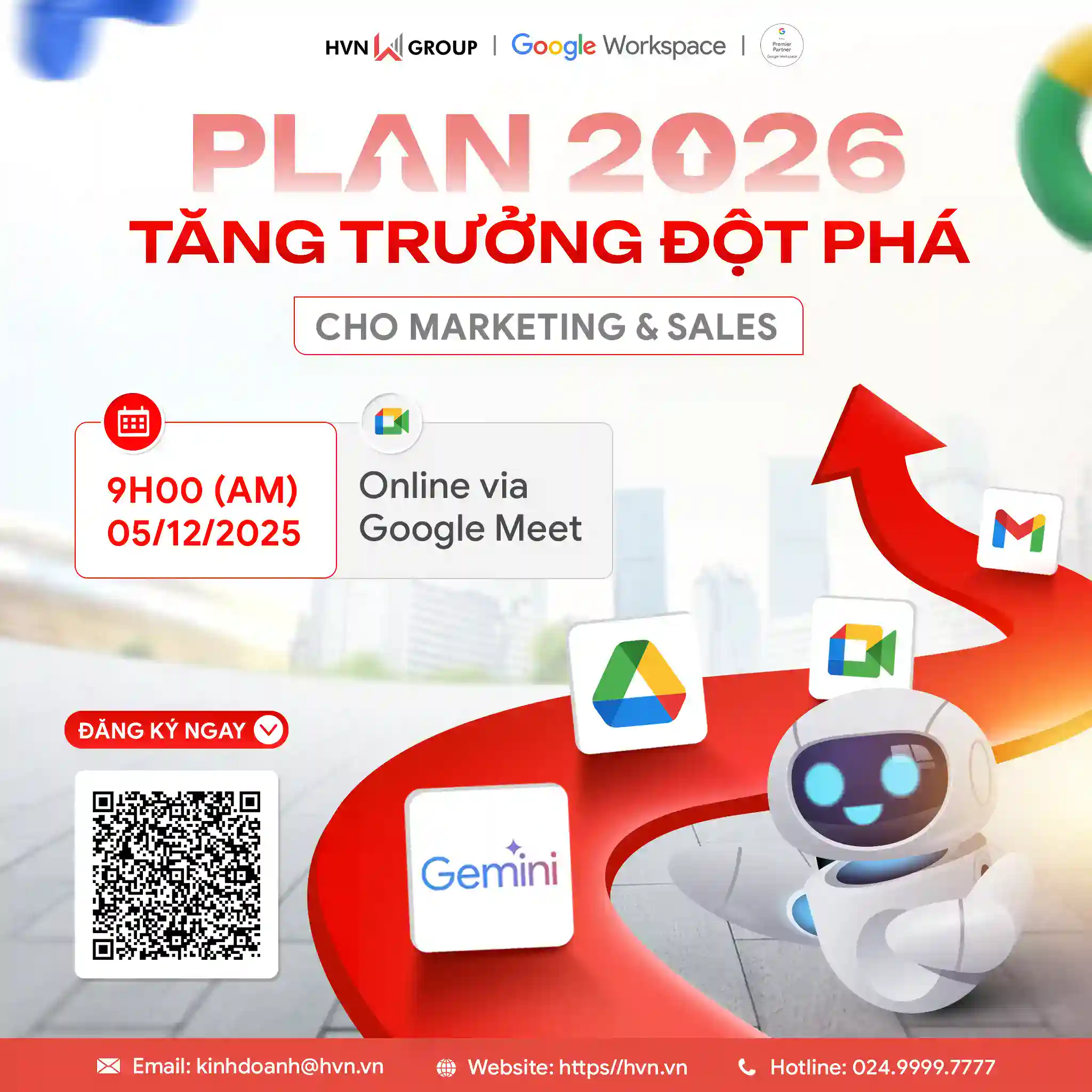 Trong bối cảnh doanh nghiệp liên tục cạnh tranh và thay đổi mạnh mẽ theo xu hướng chuyển đổi số, việc chuẩn bị một chiến lược tăng trưởng cho năm 2026 trở nên cấp thiết hơn bao giờ hết. Đặc biệt với Marketing và Sales – hai bộ phận thẳng hàng với doanh thu – mọi điểm nghẽn về dữ liệu, quy trình hay hiệu suất đều có thể ảnh hưởng trực tiếp đến kết quả kinh doanh. Chính vì thế, HVN Group phối hợp cùng Google Workspace tổ chức Webinar “PLAN 2026: Đặt Nền Móng Tăng Trưởng Đột Phá Cho Marketing & Sales”, nhằm giúp doanh nghiệp xây dựng hệ thống làm việc hợp nhất, thông minh và hiệu quả hơn.