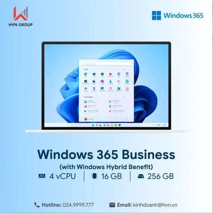 Vì sao nên đăng ký Windows 365 Business 4 vCPU, 16 GB, 256 GB (with Windows Hybrid Benefit) – Monthly tại HVN Group?