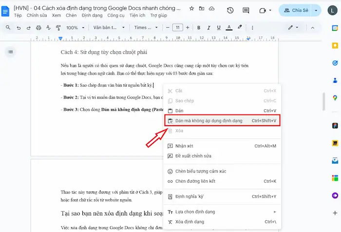 Cách 3: Dán văn bản không kèm định dạng trong Docs