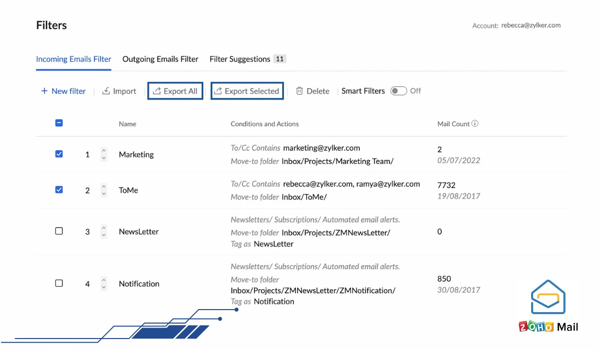 Khi sử dụng dịch vụ Zoho Mail Lite 10GB – Monthly, hòm thư của bạn sẽ trở nên khoa học hơn nhờ tính năng phân loại và tổ chức email theo các tiêu chí tùy chỉnh như thư mục, gắn nhãn,… Bộ lọc của hệ thống sẽ tự động phân loại email đến vào đúng vị trí dựa trên các quy tắc mà bạn đã thiết lập.