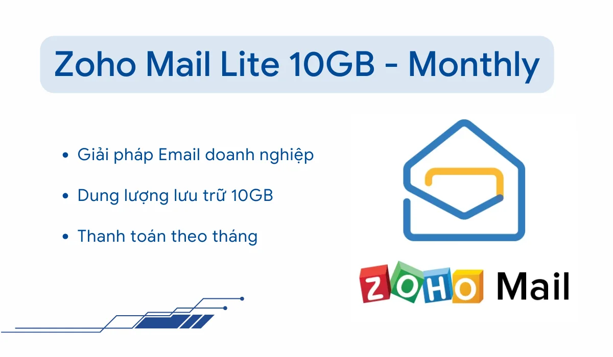 Zoho Mail Lite 10GB – Monthly là lựa chọn hàng đầu cho doanh nghiệp muốn sở hữu địa chỉ email chuyên nghiệp với chi phí tối ưu, giúp nâng cao hình ảnh thương hiệu và hiệu quả giao tiếp.